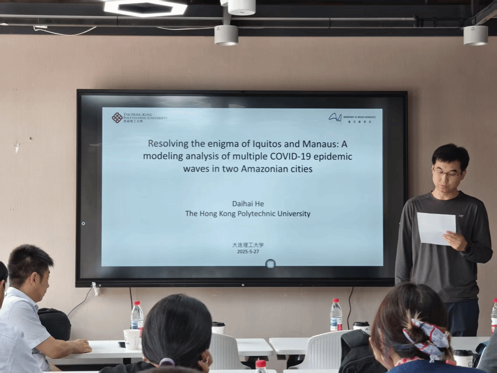 5月27日上午,香港理工大学应用数学系何岱海教授在永利集团3044欢迎光临举办了一场题为《Resolving the enigma of Iquitos and Manaus: A modeling analysis of multiple COVID-19 epidemic waves in two Amazonian cities》的学术报告。报告通过数据驱动模型,深入探讨了秘鲁伊基托斯和巴西玛瑙斯两座城市在COVID-19 疫情期间的独特流行病学现象,为全球疫情防控提供了重要科学依据。