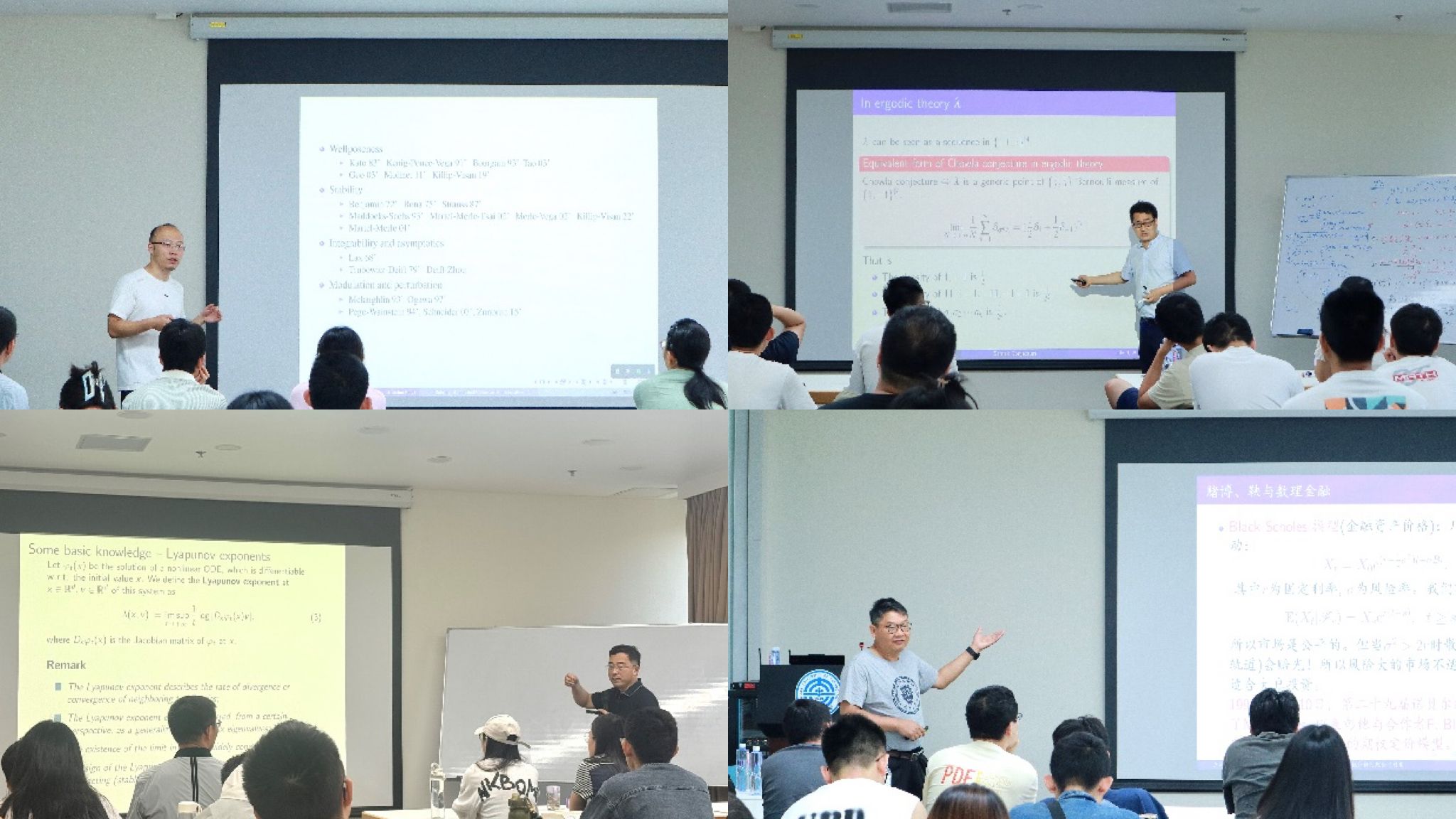 本次暑期学校还邀请了中国科学院数学与系统科学研究院的马志明院士、中国科学技术大学的叶向东院士、南京师范大学的陈二才教授、University of Oklahoma的Alexander Grigo 教授、中国科学技术大学的黄文教授、华中科技大学的李骥教授、四川大学的连增教授、永利集团3044欢迎光临的柳振鑫教授、天津大学的王凤雨教授、北京大学的王嵬教授、University of Birmingham的王玉昭教授、北京大学的王振富教授、北京大学的谢俊逸教授、清华大学的薛金鑫教授、大湾区大学的张宏坤教授、上海师范大学的周鹏教授等作前沿学术报告,并与参会者围绕微分方程与动力系统的研究成果与前沿问题进行了深入交流和探讨。