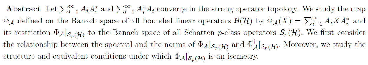 报告题目:Completely positive and isometric maps on Schatten class operators