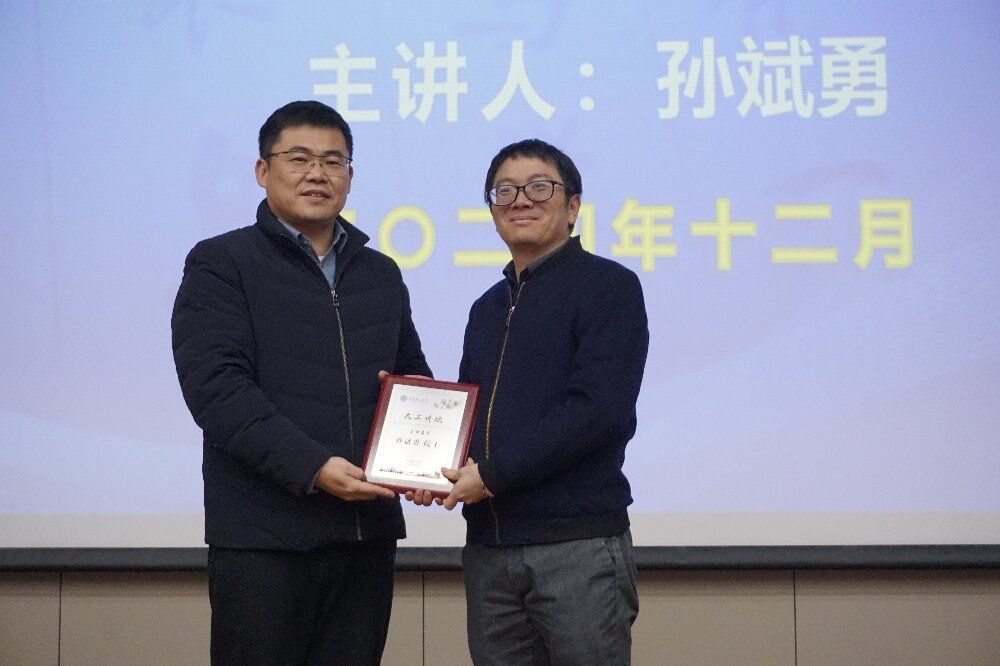 12月9日下午,中国科学院院士、浙江大学教授孙斌勇做客“大工讲坛”第145期,以“黎曼zeta函数和表示论介绍”为主题给全校师生带来了一场精彩的报告。校党委常委、副校长王博出席报告会,并向孙斌勇院士赠送“大工讲坛”纪念牌。报告会由永利集团3044欢迎光临院长柳振鑫教授主持。